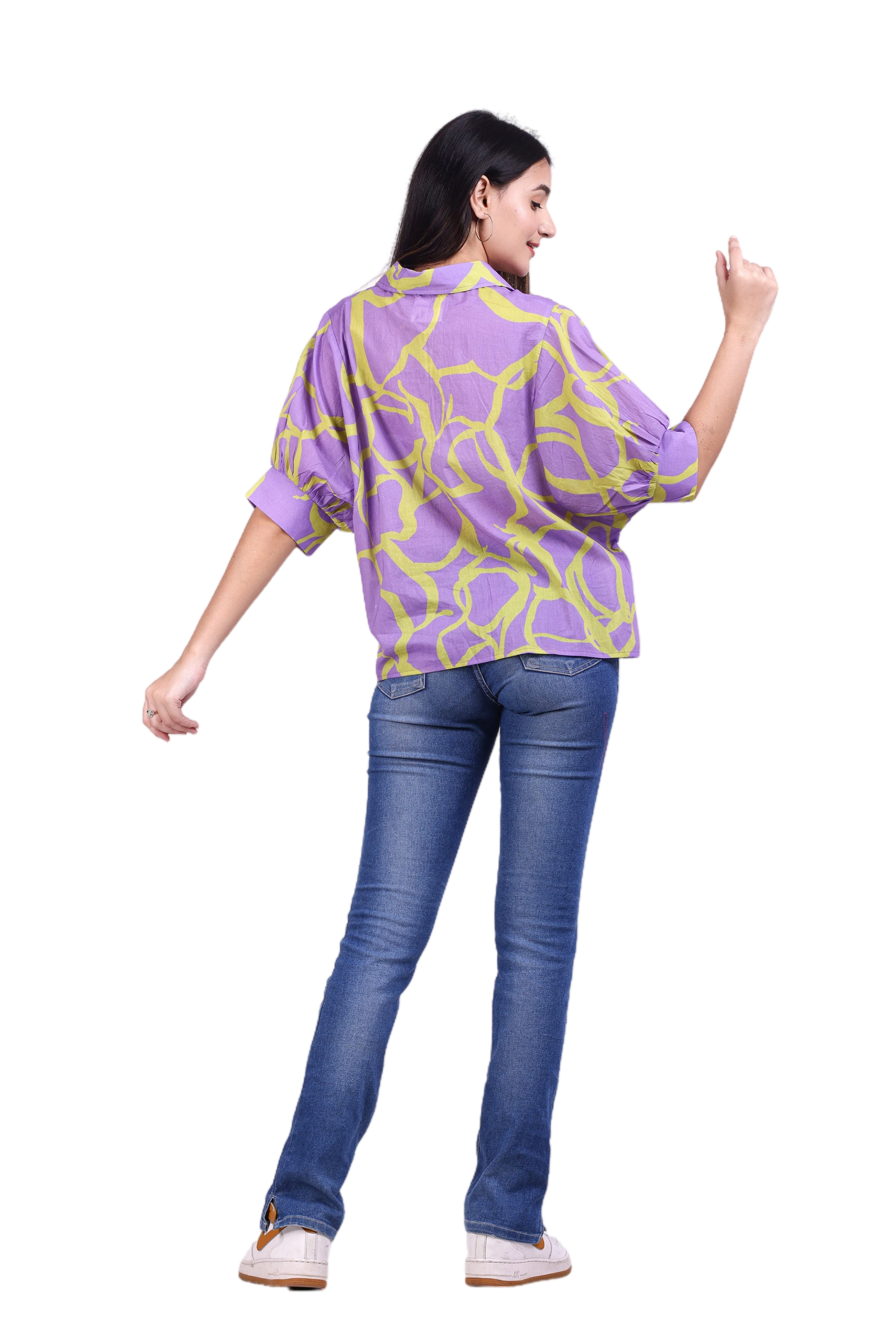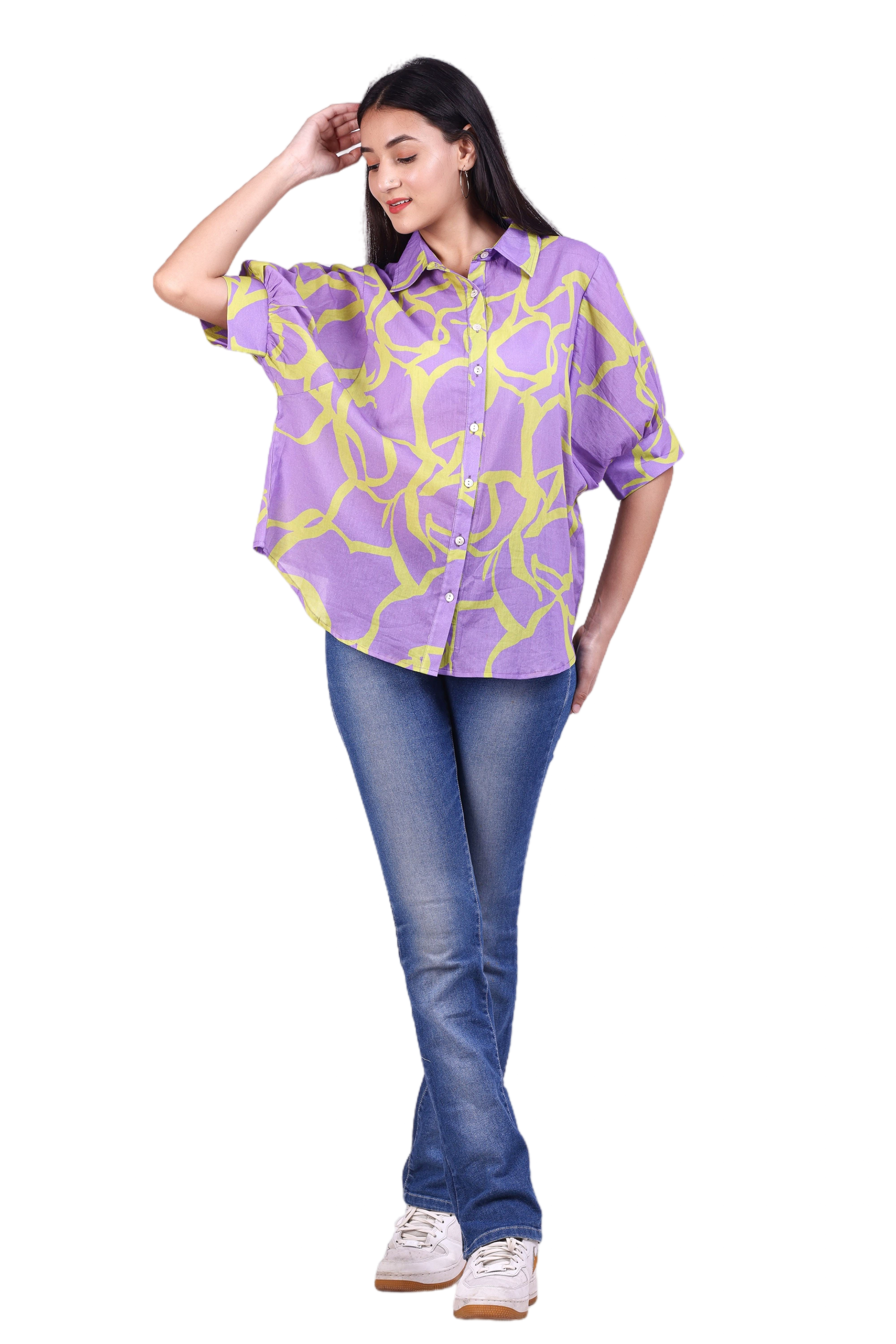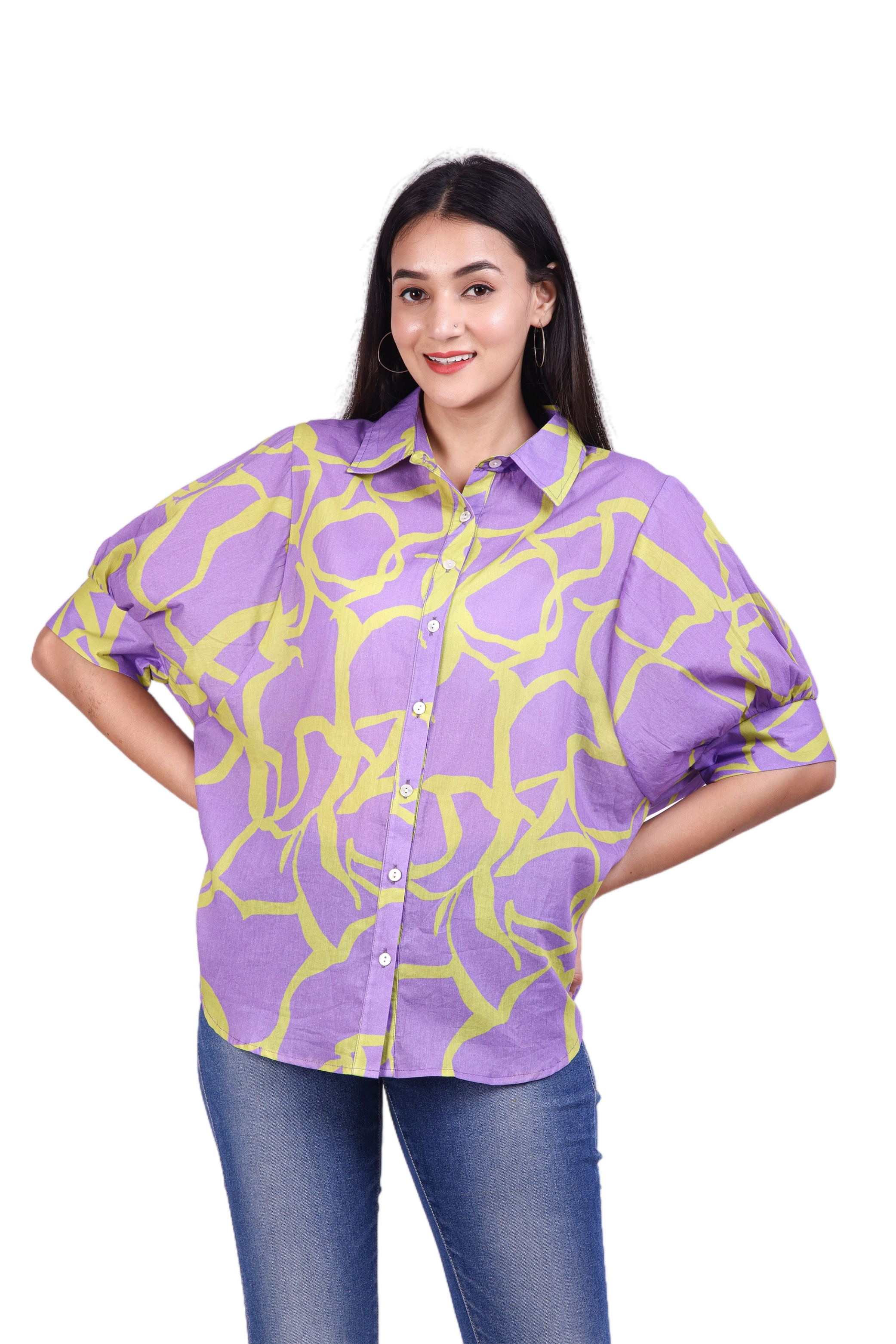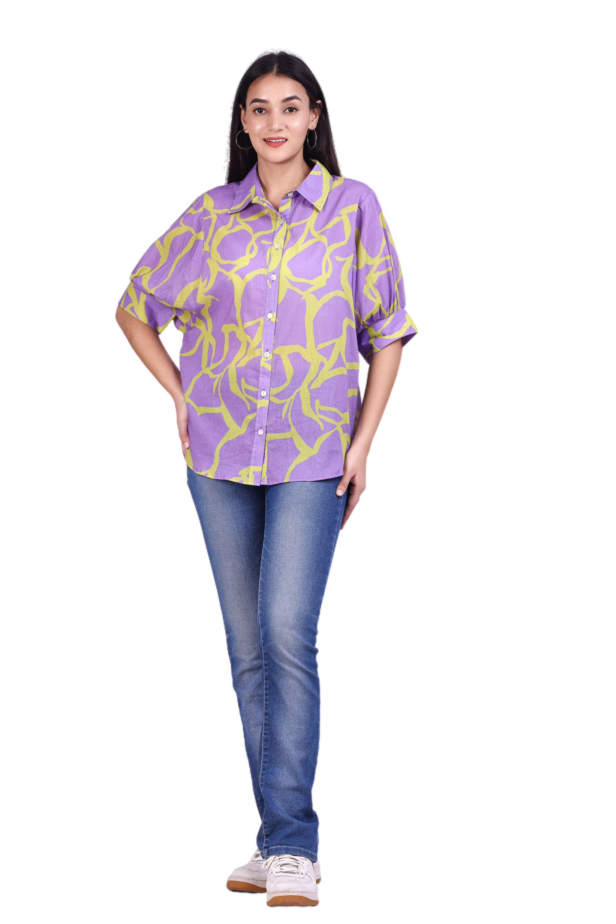 Patterned Shirt. This stylish and comfortable shirt features a vibrant purple base adorned with eye-catching yellow patterns, perfect for effortless everyday fashion. The button-down design and relaxed fit ensure comfort and versatility, making it suitable for various occasions. This shirt is available in multiple sizes: S, M, L, XL, and XXL, ensuring a perfect fit for everyone. Elevate your style with the G-Class brand, known for its trendy designs and high-quality fabric.