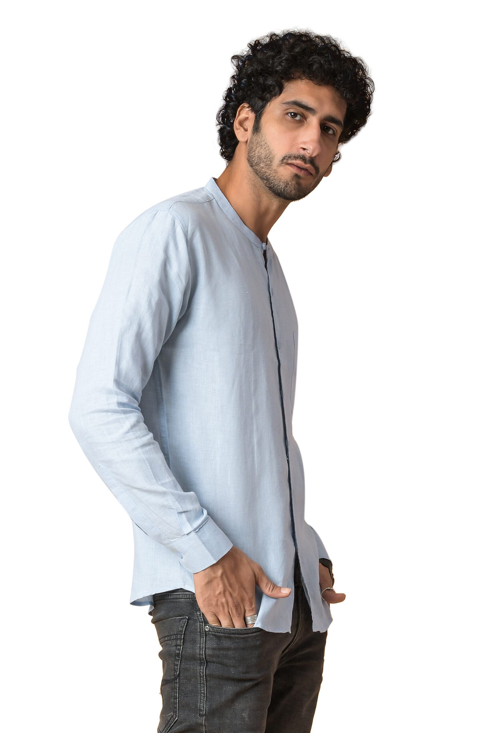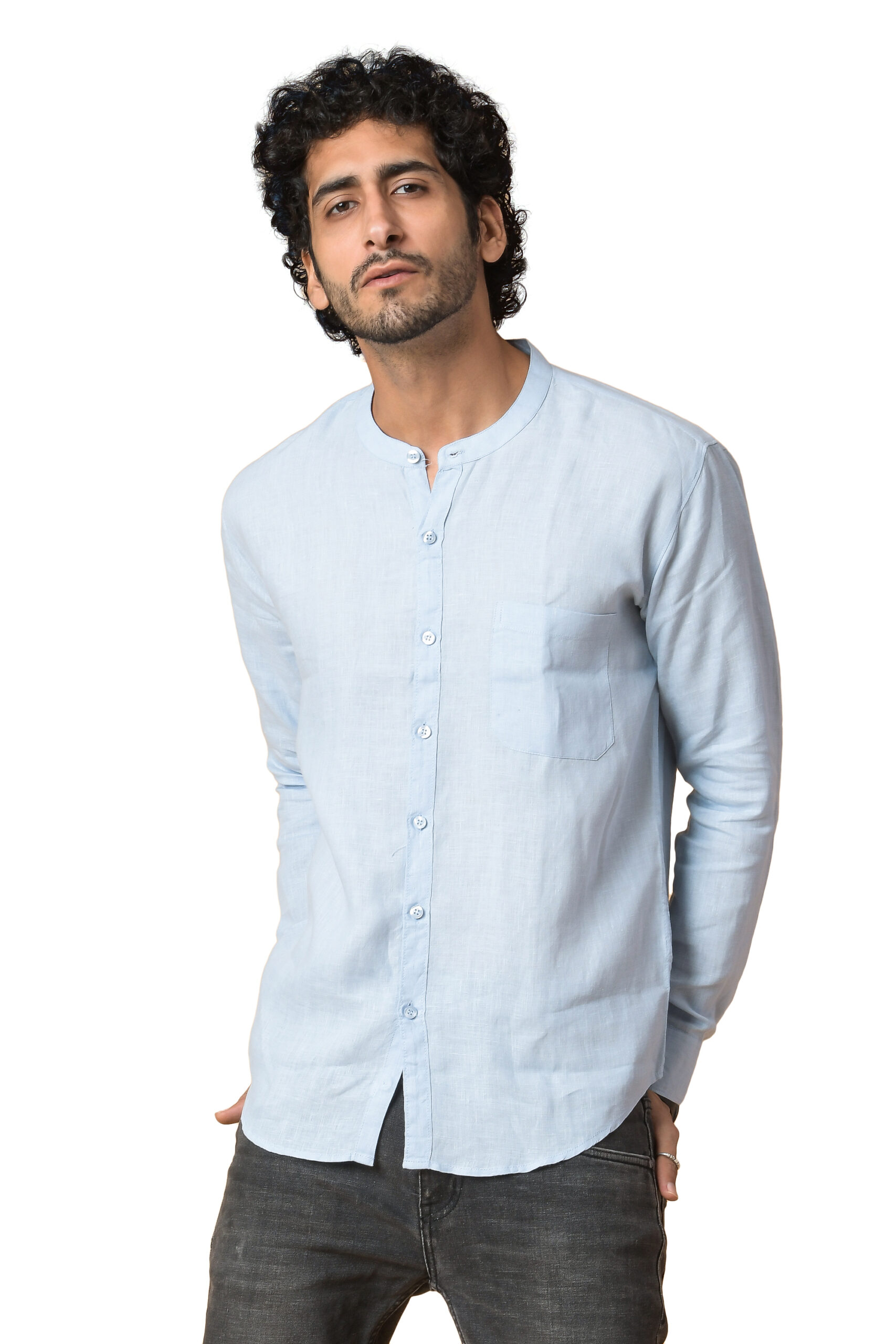 Discover the perfect blend of style and comfort with our premium 100% Linen Men’s Long Sleeve Button-Down Shirt in a refreshing light blue shade. This breathable fabric is ideal for keeping you cool and comfortable all day long. Featuring a classic mandarin collar and a convenient chest pocket, this shirt is designed to elevate your casual and formal wardrobe. Perfect for any occasion, whether it’s a day at the office or a weekend outing.