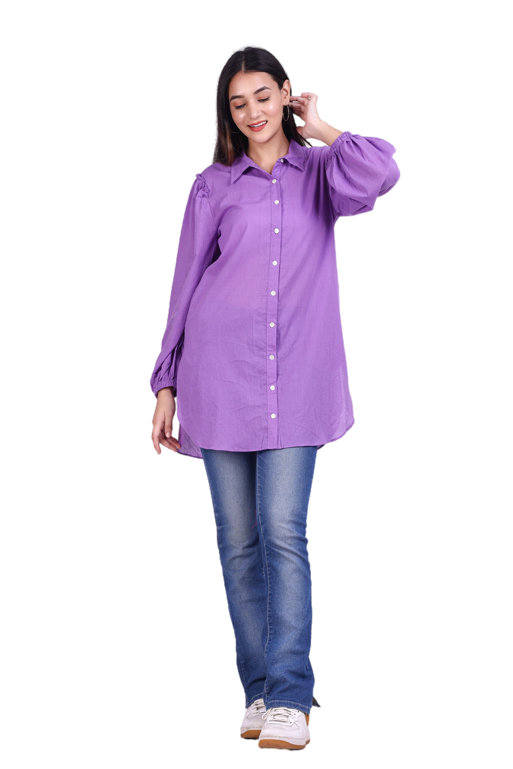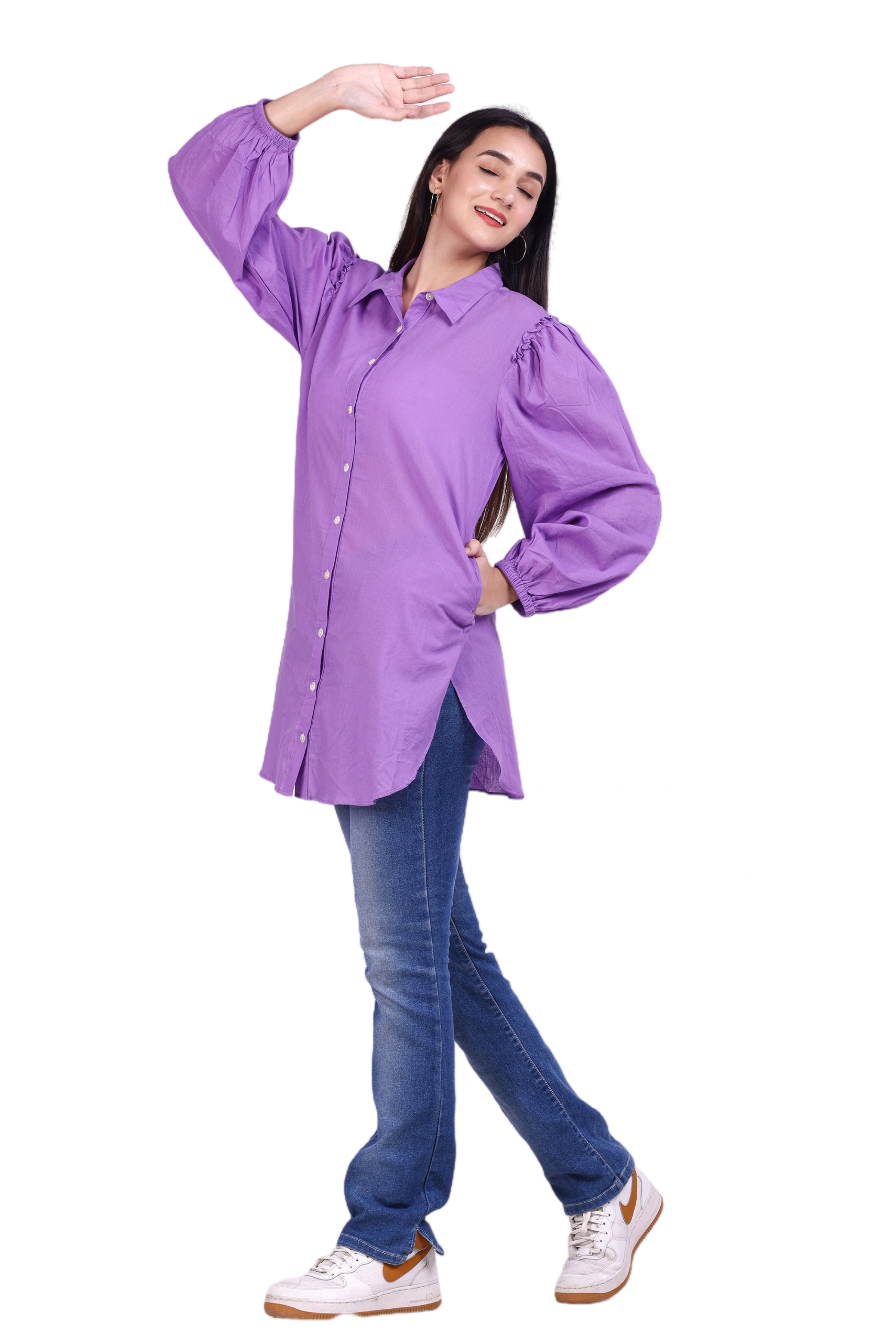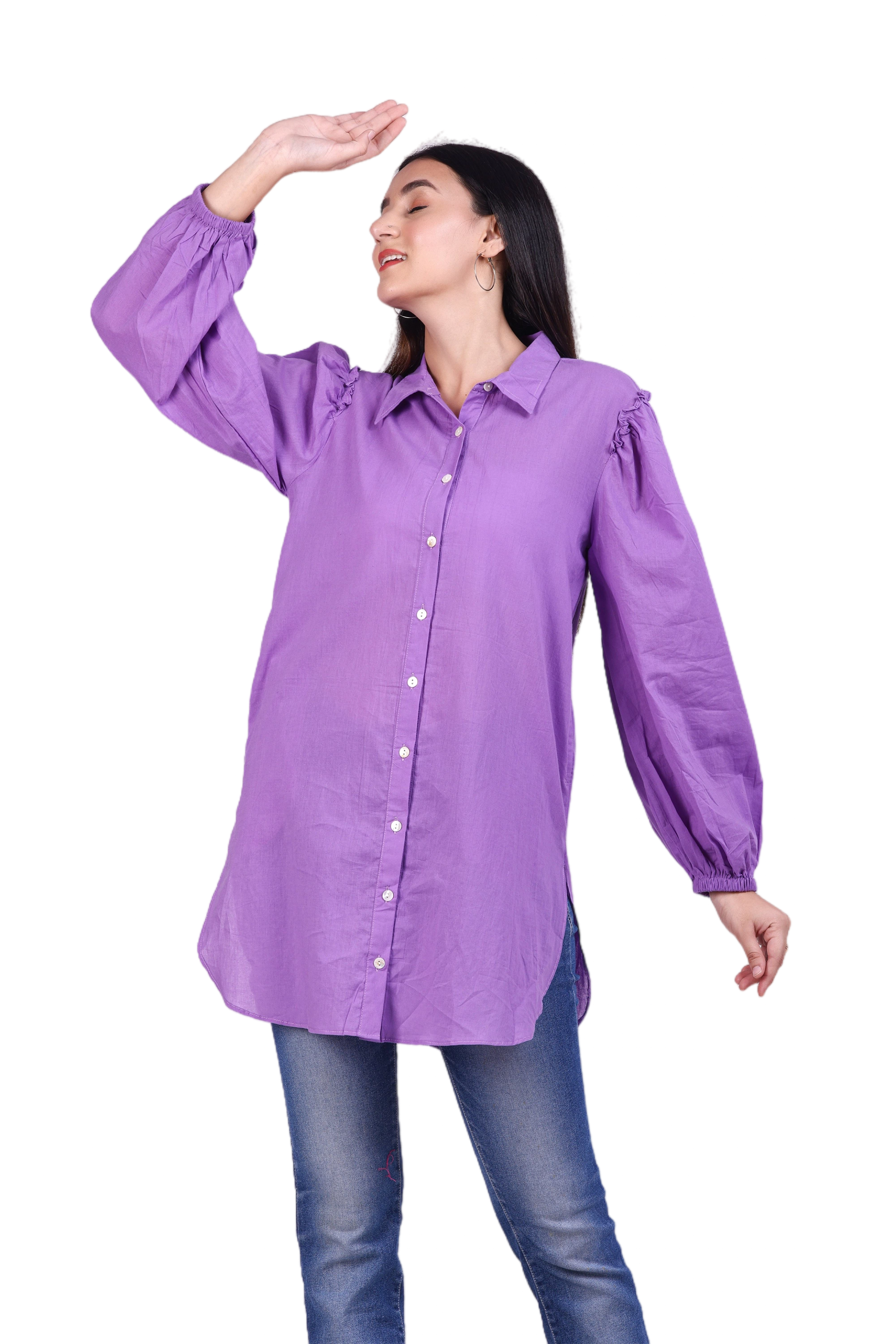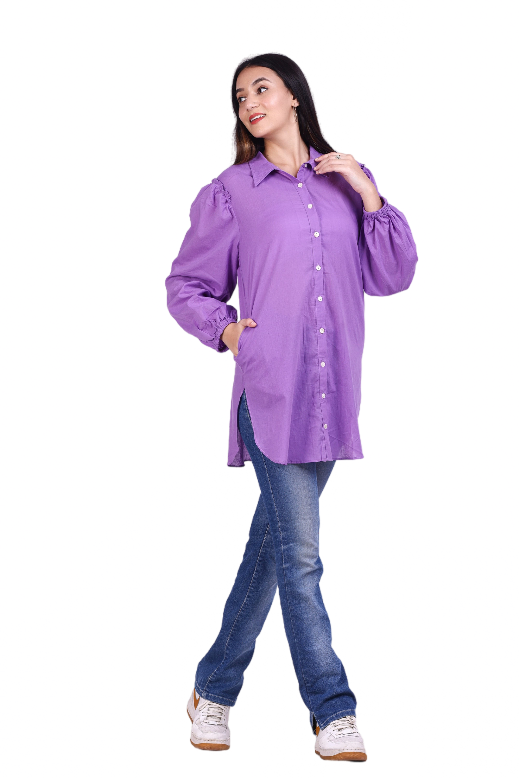 Upgrade your wardrobe with this chic and elegant purple long sleeve button-up shirt from G-Class. Fashioned from high-quality, comfortable fabric, this shirt features stylish puff sleeves and a classic collar, perfect for both casual and semi-formal occasions. Available in Sizes S, M, L, Xl, and XXL, this versatile piece is a must-have addition to your clothing collection. Pair it with your favourite jeans or skirts to create a trendy and sophisticated look.